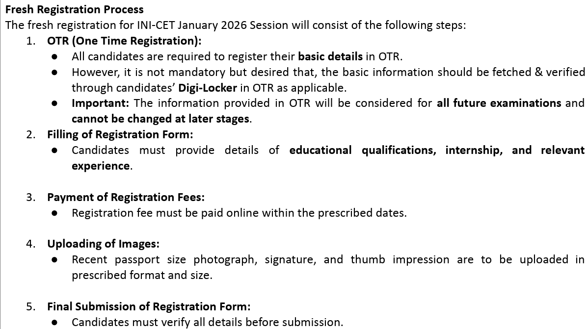 INI-CET Online Registration & Form Filling Jan 2026 Session :