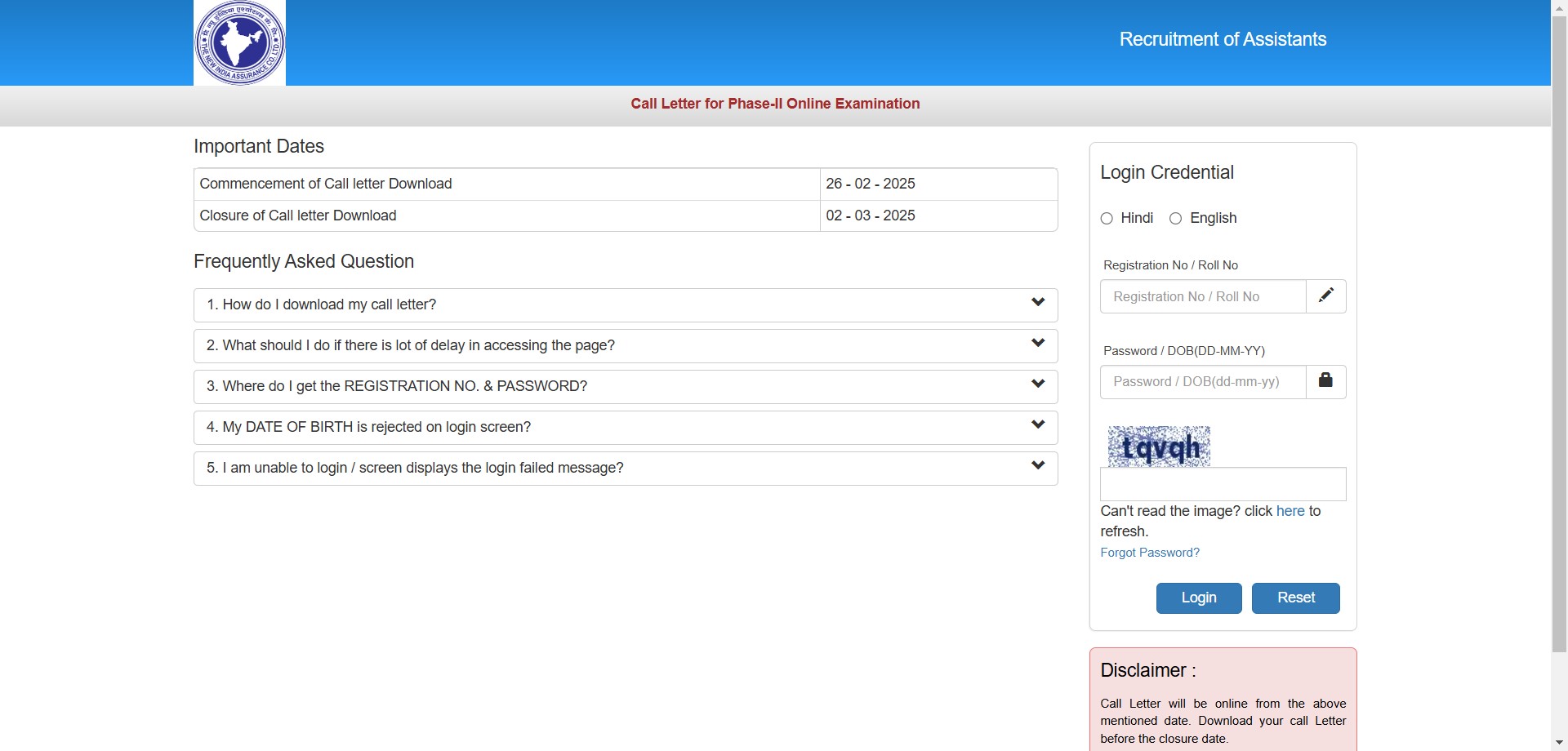 NIACL Assistant Mains Exam Admit Card 2025NIACL