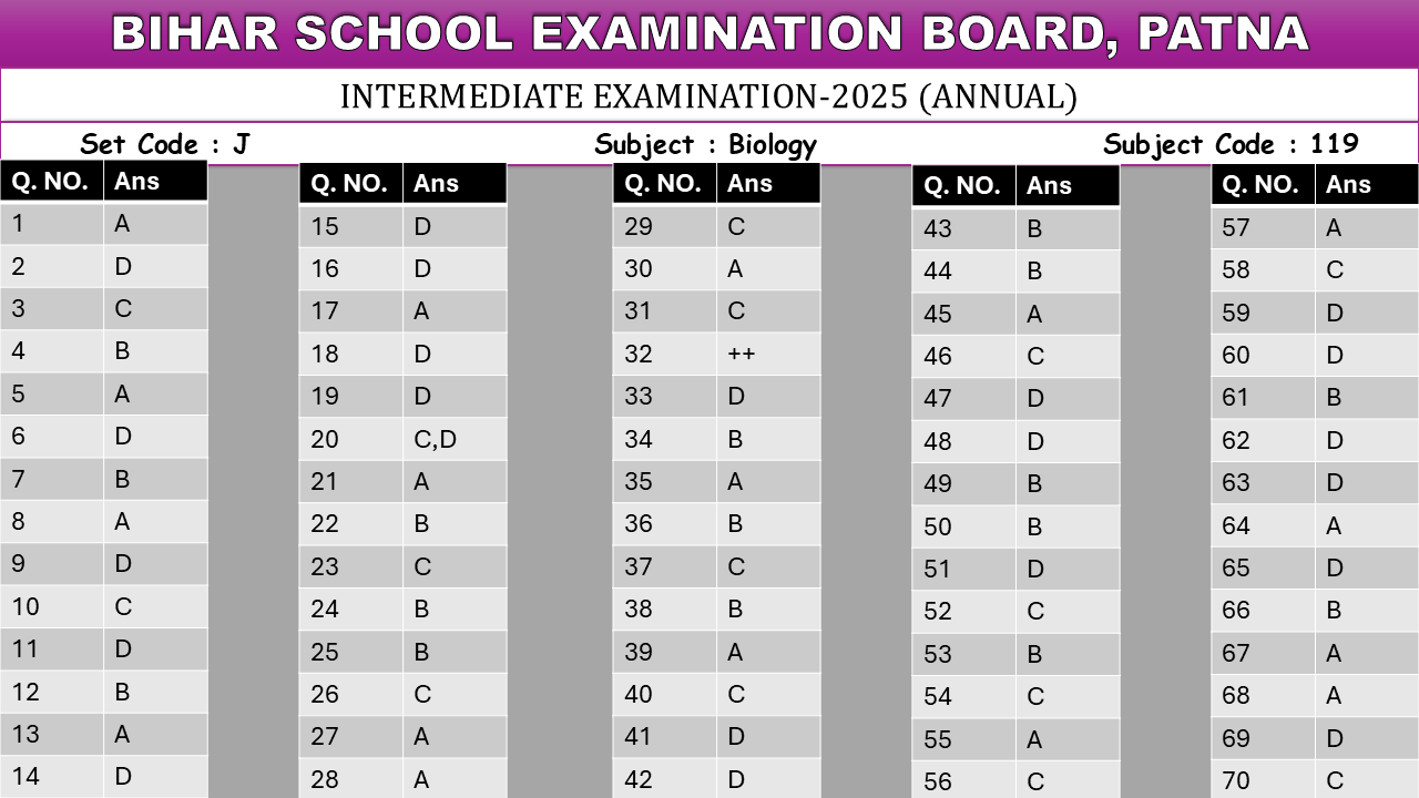 SUBJECT : BIOLOGY                SUBJECT CODE : 119           SET NO : J