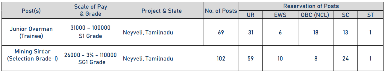 NLC Overman & Mining Sirdar Recruitment 2025 : Vacancy Details