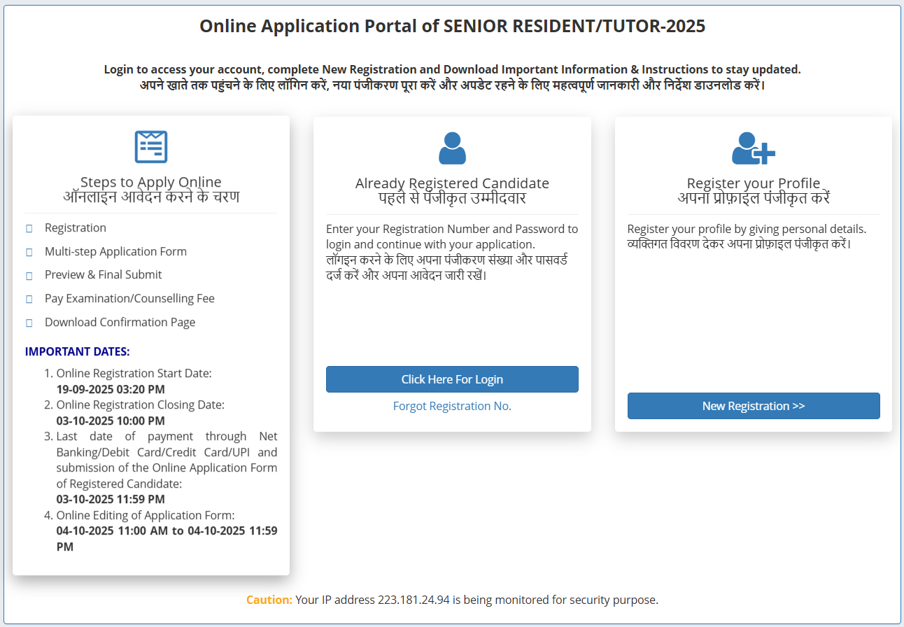 3. Please ensure your eligibility as per the criteria laid down for SENIOR RESIDENT/TUTOR-2025.