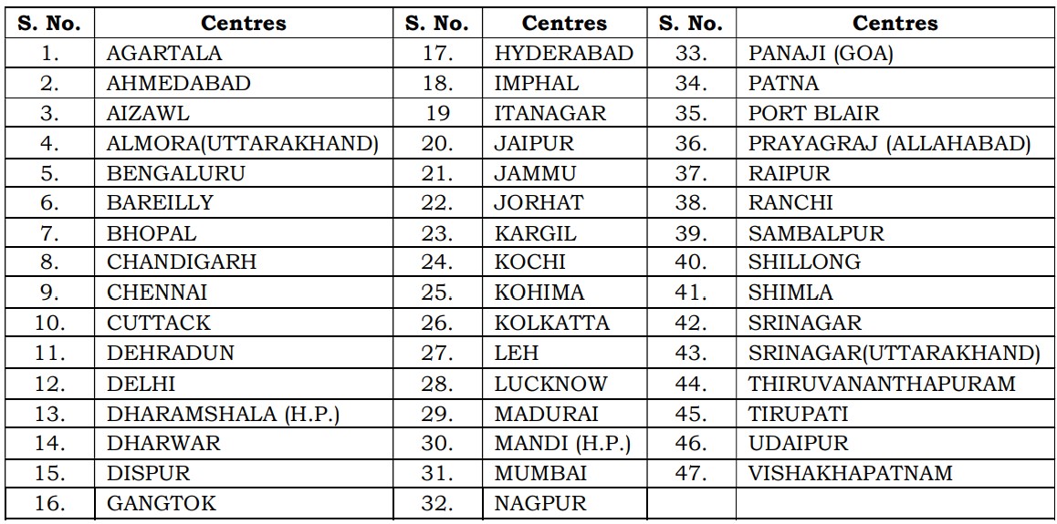 Exam Centres List :